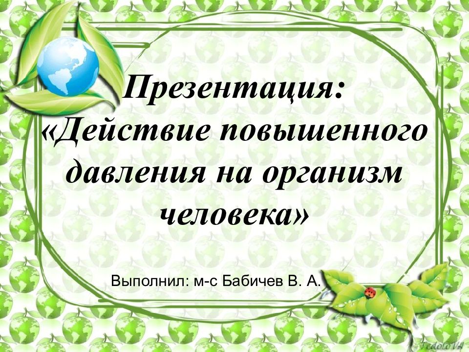 Первый слайд презентации: Презентация: «Действие повышенного давления на организм человека»