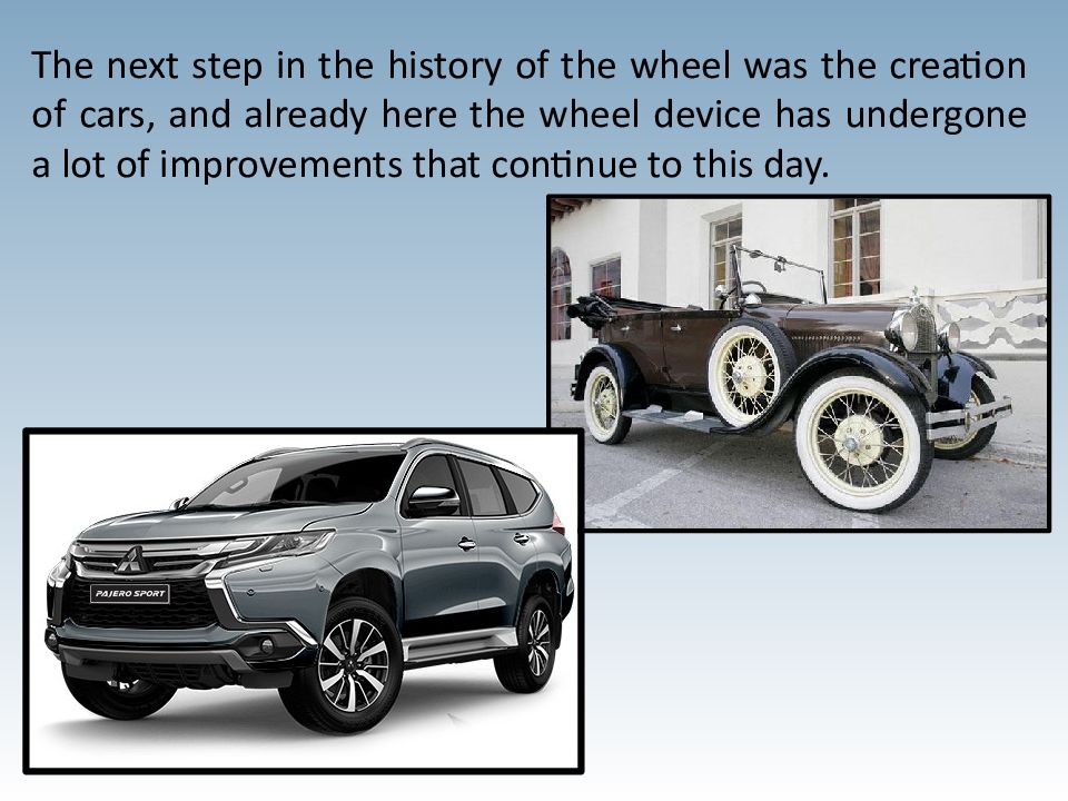 The next step in the history of the wheel was the creation of cars, and already here the wheel device has undergone a lot of improvements that continue to this day.