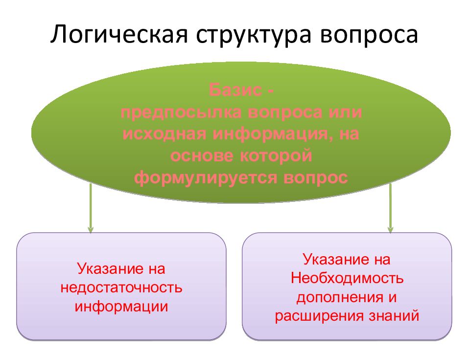 Базис - предпосылка вопроса или исходная информация, на основе которой формулируется вопрос Указание на недостаточность информации Указание на Необходимость дополнения и расширения знаний
