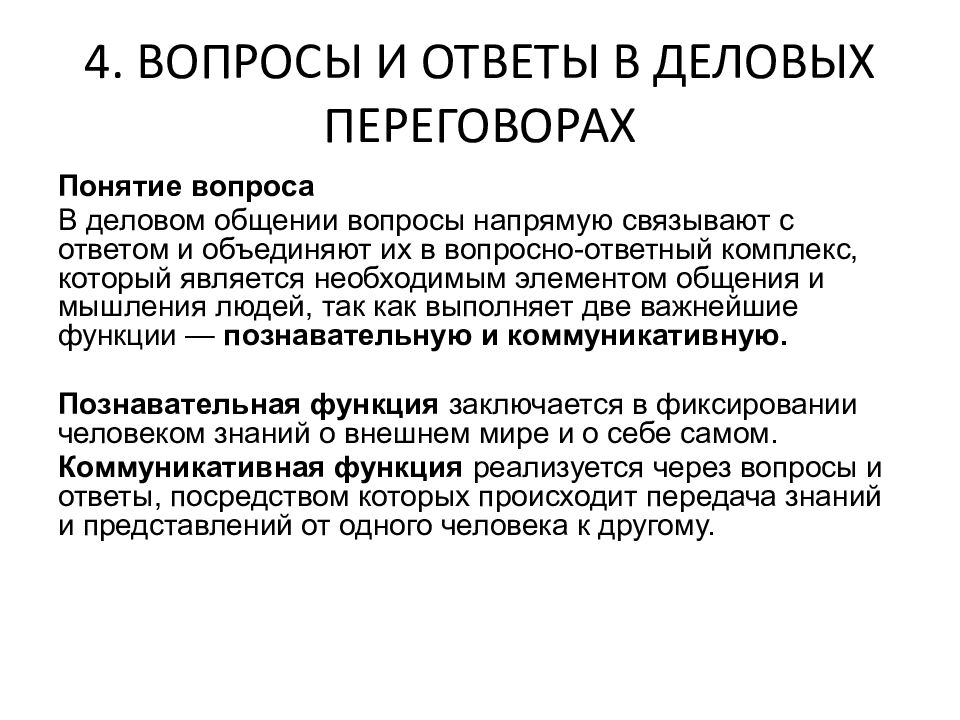 Слайд 29: 4. ВОПРОСЫ И ОТВЕТЫ В ДЕЛОВЫХ ПЕРЕГОВОРАХ