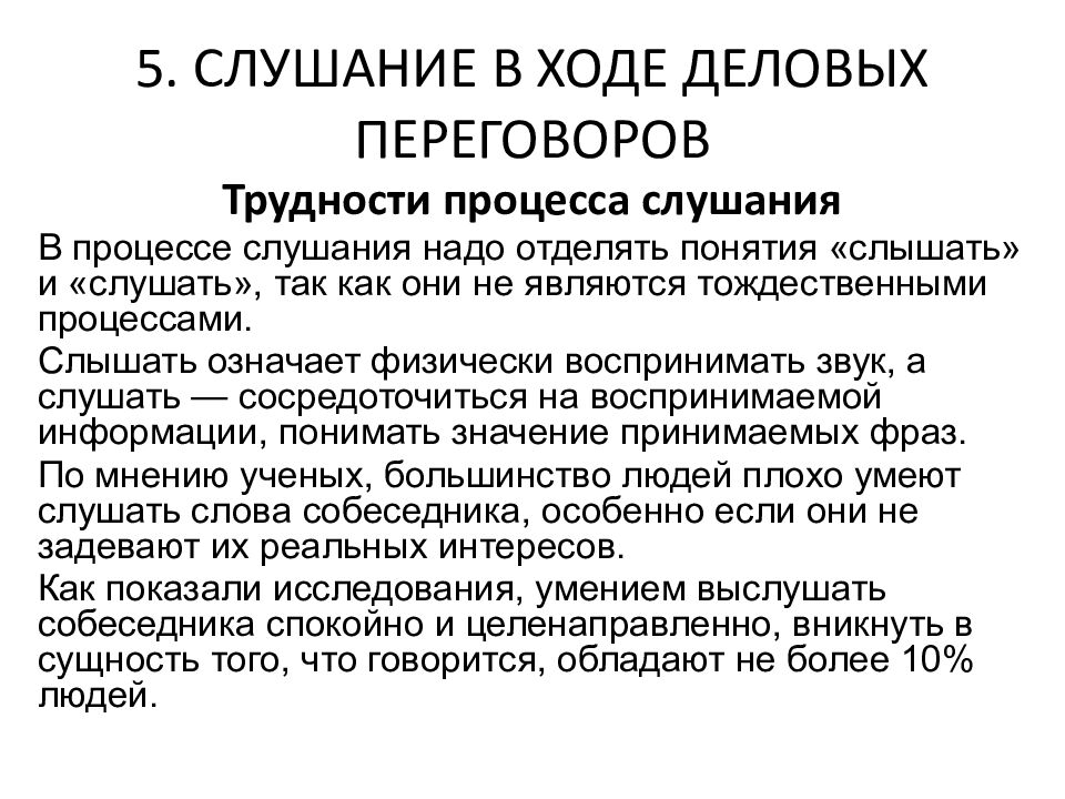 Слайд 58: 5. СЛУШАНИЕ В ХОДЕ ДЕЛОВЫХ ПЕРЕГОВОРОВ