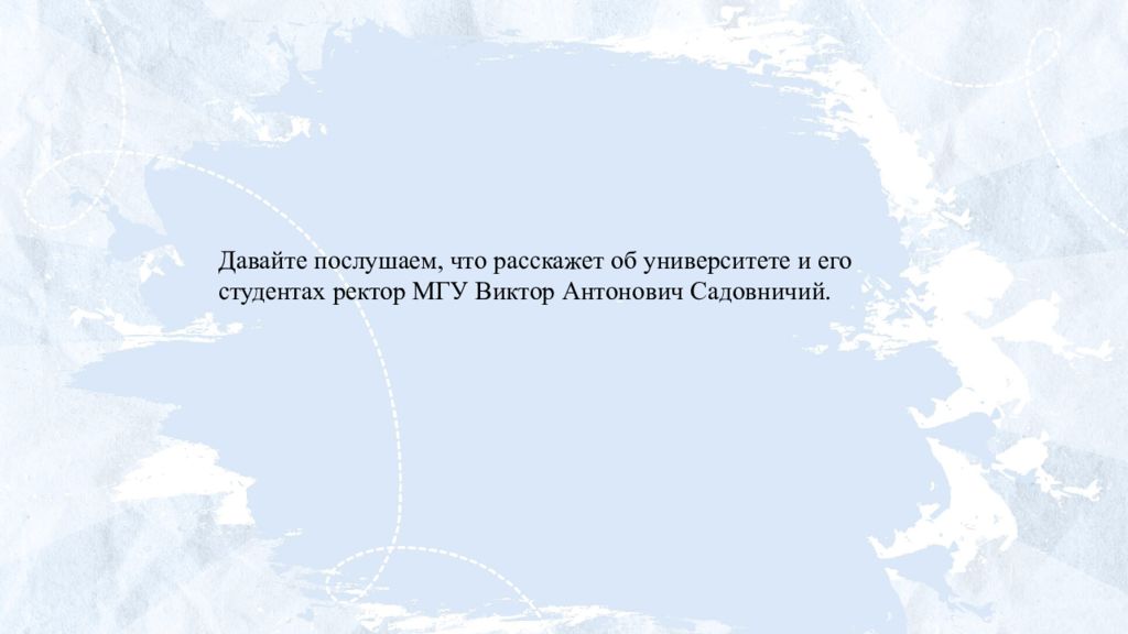 Давайте послушаем, что расскажет об университете и его студентах ректор МГУ Виктор Антонович Садовничий.