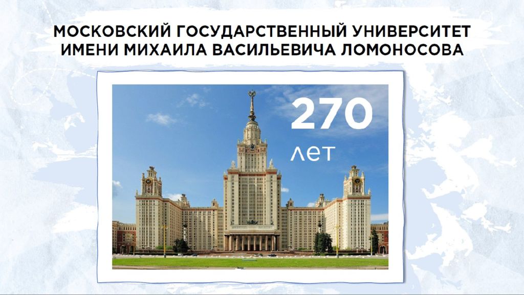 Чем студенты отличаются от школьников? Если у вас есть знакомые студенты, расскажите, какие они. Кем станут студенты в будущем? Из видеоролика в начале занятия вы уже узнали, что День студента отмечается 25 января, потому что именно в этот день 270 лет назад был основан первый российский университет, который сейчас называется Московский государственный университет имени Михаила Васильевича Ломоносова.