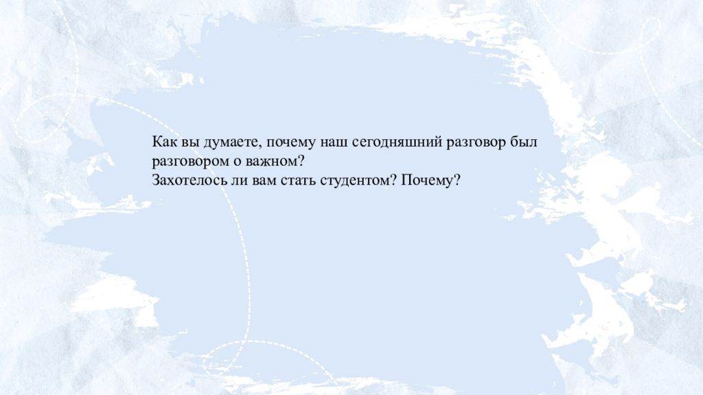 Как вы думаете, почему наш сегодняшний разговор был разговором о важном? Захотелось ли вам стать студентом? Почему?