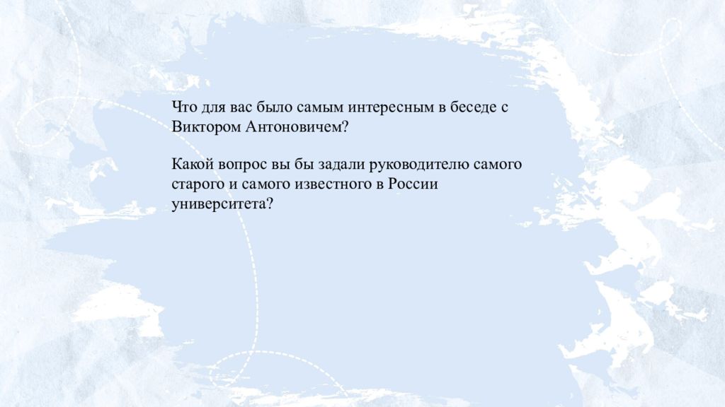 Что для вас было самым интересным в беседе с Виктором Антоновичем? Какой вопрос вы бы задали руководителю самого старого и самого известного в России университета?