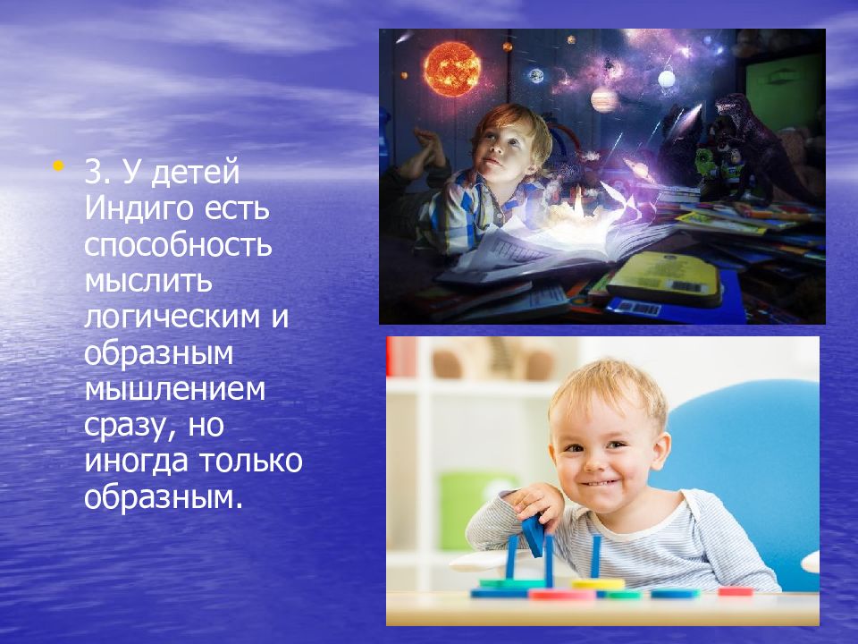 3. У детей Индиго есть способность мыслить логическим и образным мышлением сразу, но иногда только образным.