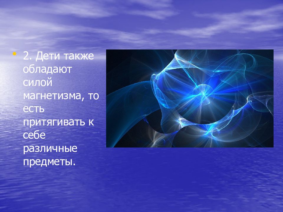 2. Дети также обладают силой магнетизма, то есть притягивать к себе различные предметы.