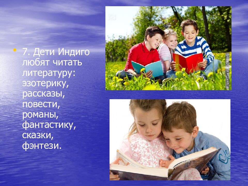 7. Дети Индиго любят читать литературу: эзотерику, рассказы, повести, романы, фантастику, сказки, фэнтези.