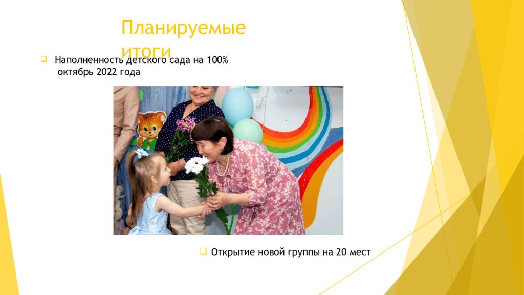 Наполненность детского сада на 100% октябрь 2022 года Открытие новой группы на 20 мест