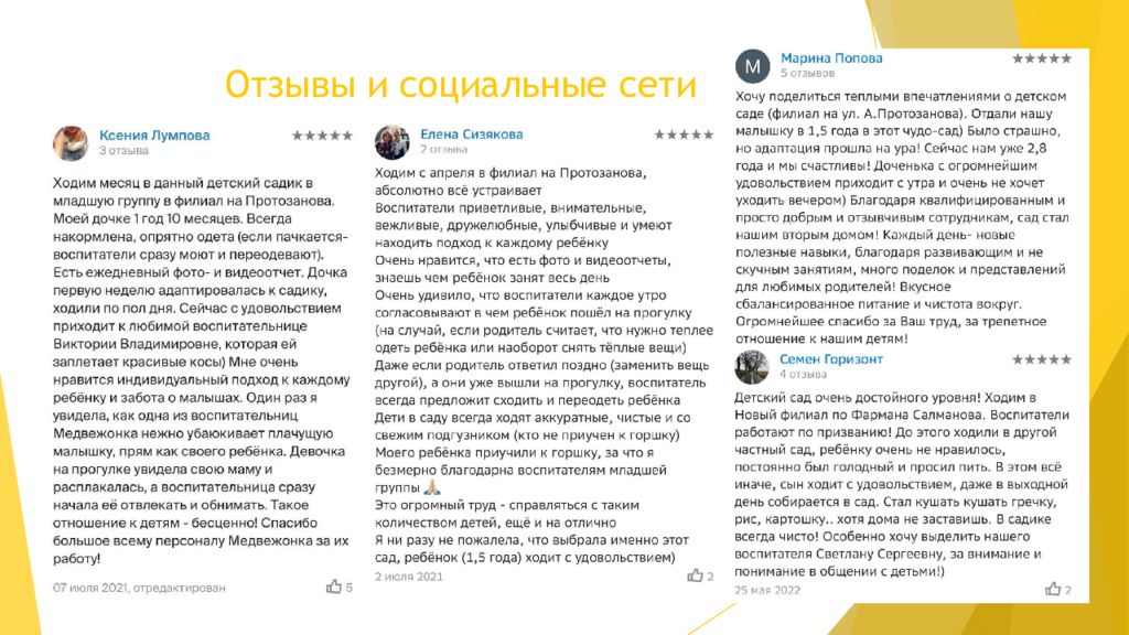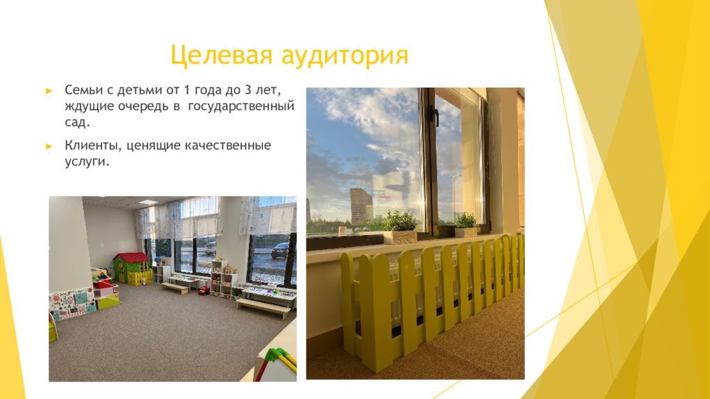 ▶ Семьи с детьми от 1 года до 3 лет, ждущие очередь в государственный сад. ▶ Клиенты, ценящие качественные услуги.