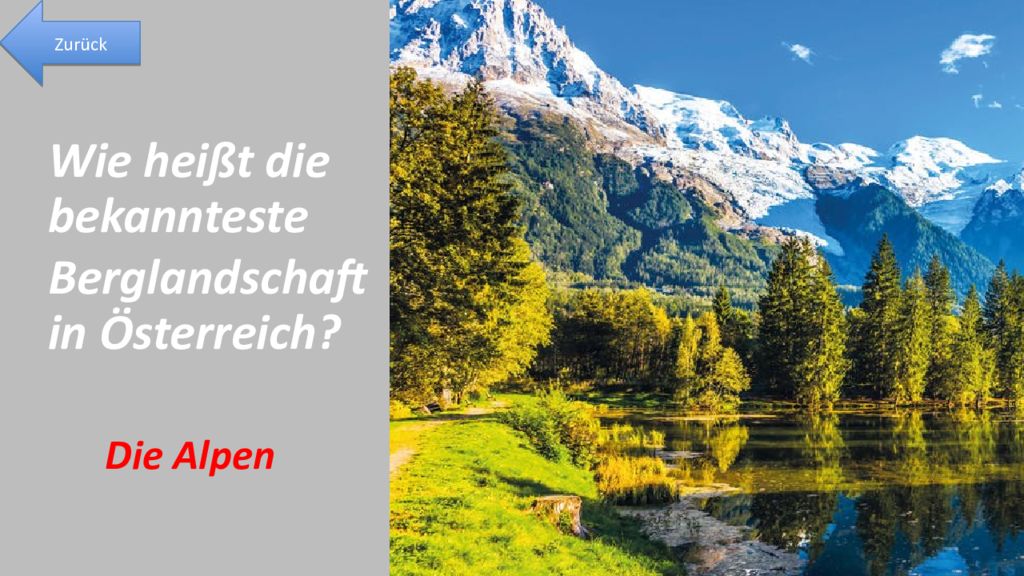 Wie heißt die bekannteste Berglandschaft in Österreich? Zurück Die Alpen