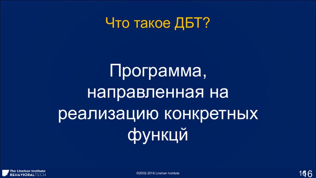 ДБТ была создана для тяжелых хронических, трудноизлечимых пациентов с несколькими диагнозами и расстройствами по Осям I и II одновременно.