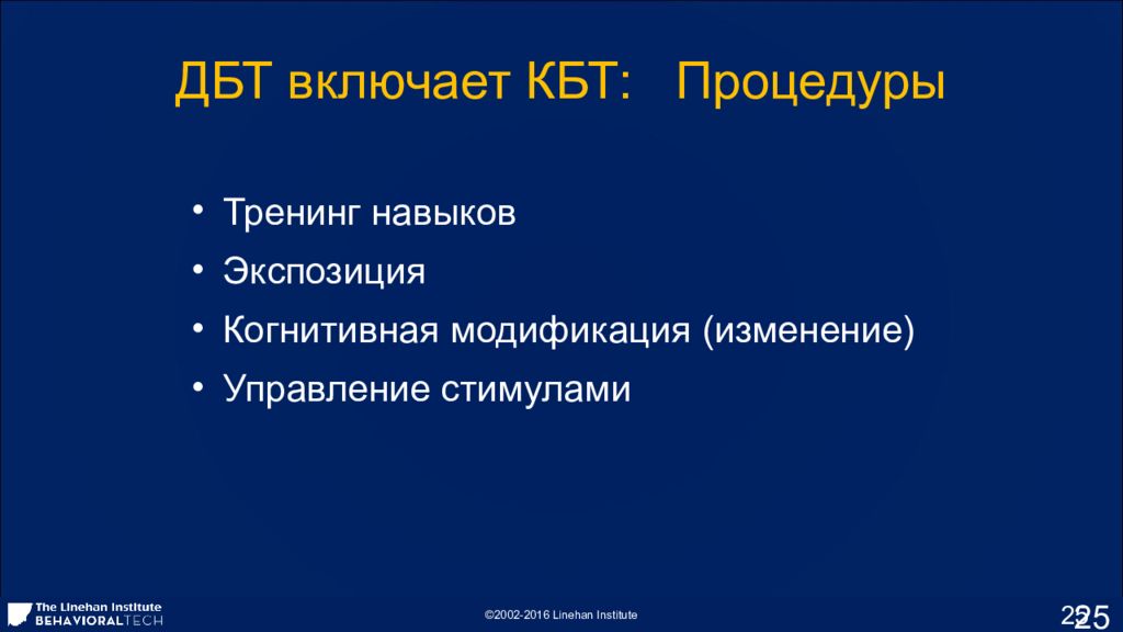 Слайд 25: ДБТ включает КБТ : Процедуры