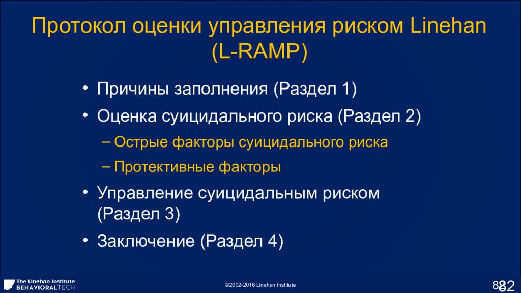 Слайд 82: Протокол оценки управления риском Linehan (L-RAMP)