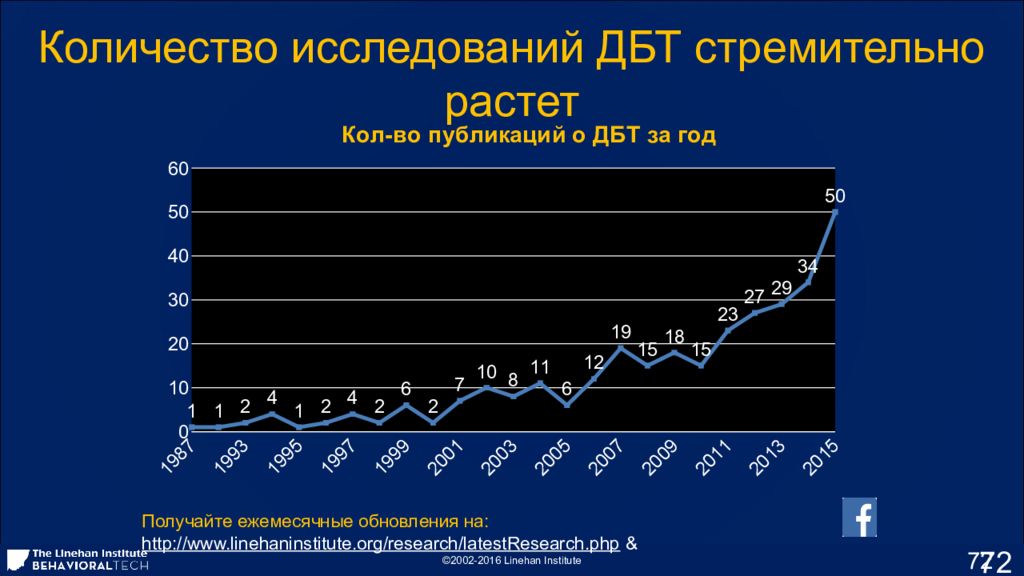 Слайд 72: Количество исследований ДБТ стремительно растет