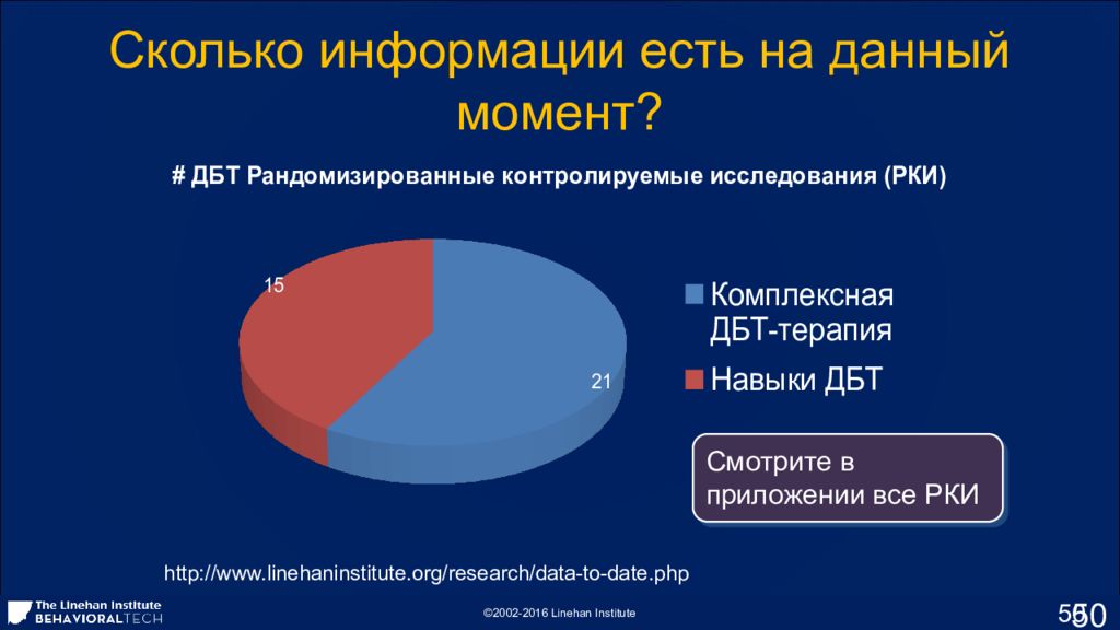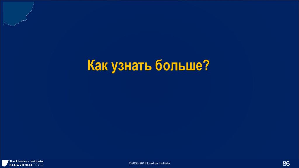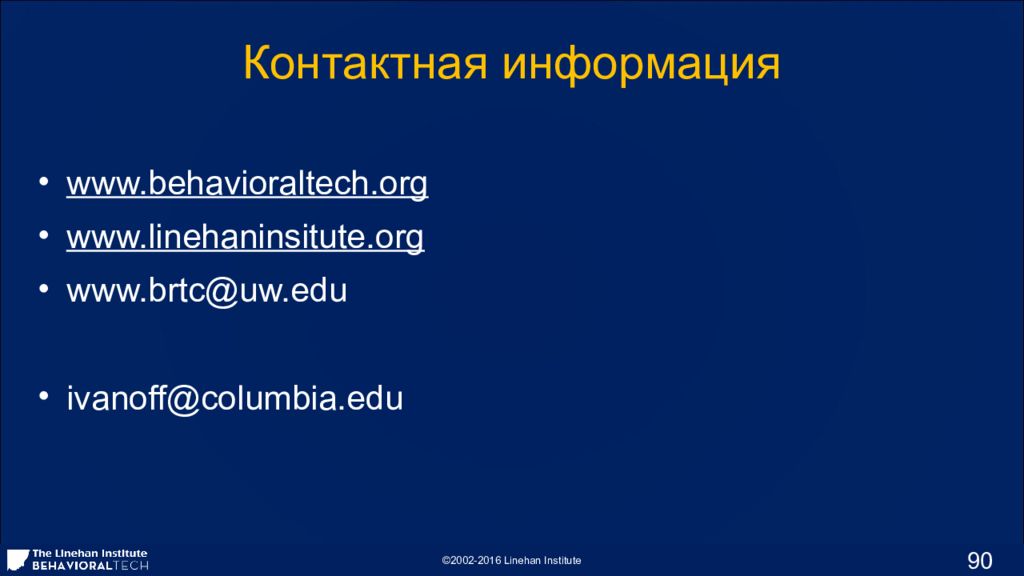 Linehan, M.M. (2015). DBT ® Skills Training Manual (2 nd Edition). New York: Guilford Press. Linehan, M.M. (2015). DBT ® Skills Training Handouts & Worksheets. New York: Guilford Press. Руководства по тренингу навыков ДБТ 2015