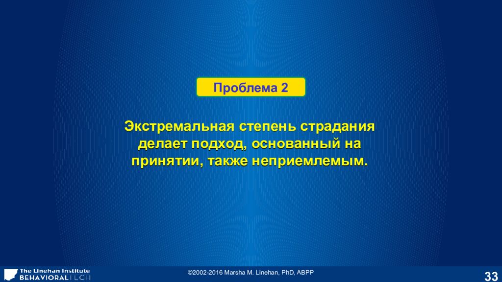 Экстремальная степень страдания делает подход, основанный на принятии, также неприемлемым. Проблема 2