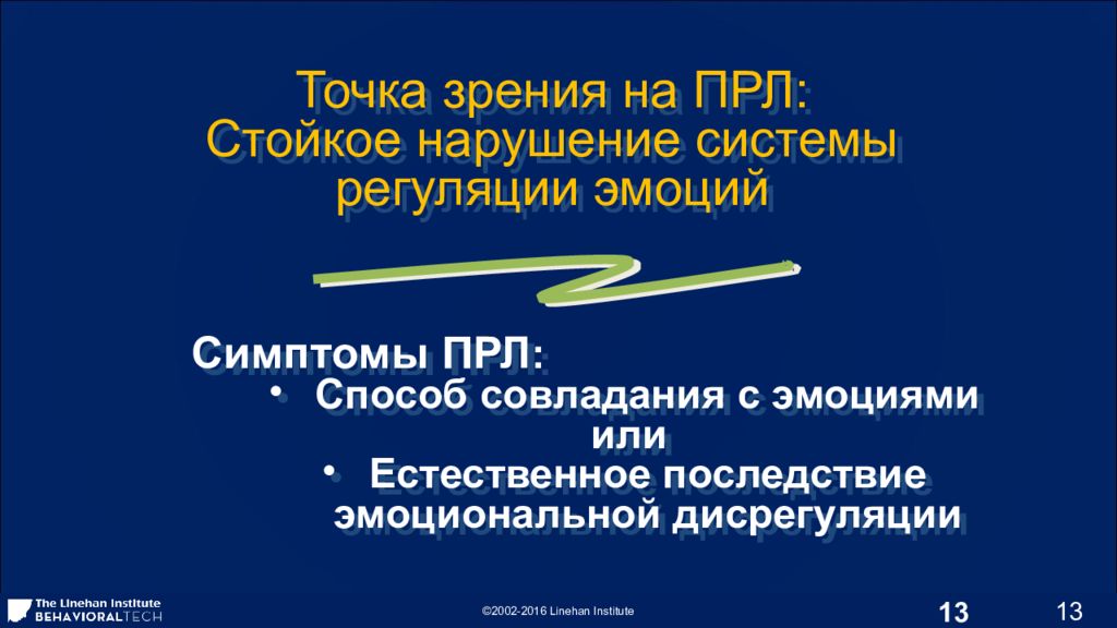 Слайд 13: Точка зрения на ПРЛ : Стойкое нарушение системы регуляции эмоций