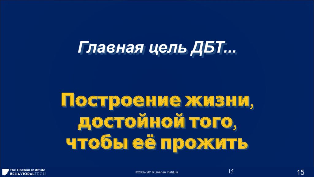 Главная цель ДБТ... Построение жизни, достойной того, чтобы её прожить 15