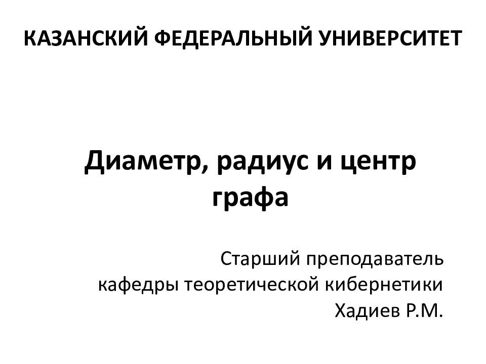 Первый слайд презентации: Диаметр, радиус и центр графа