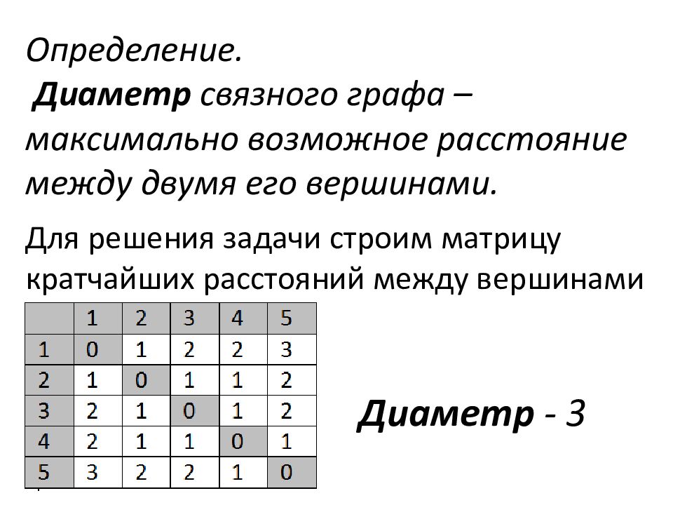 Слайд 6: Определение диаметра графа