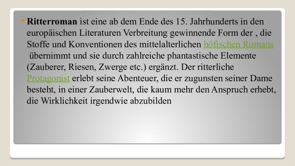 Первый слайд презентации: Die Ritterroman in der deutschen Literatur