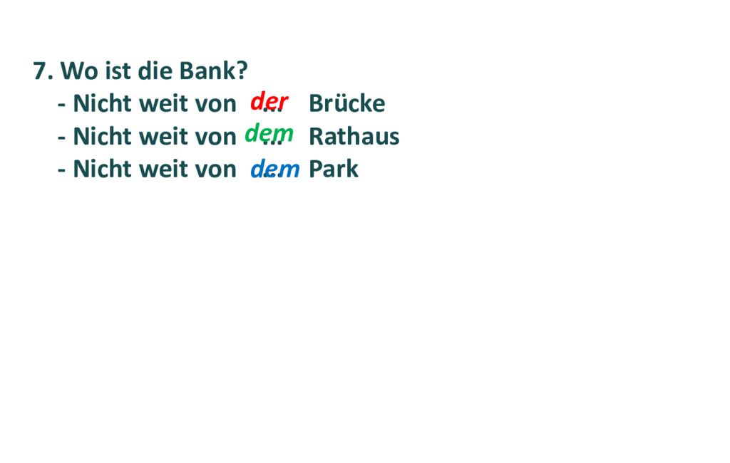 7. Wo ist die Bank? - Nicht weit von... Brücke - Nicht weit von... Rathaus - Nicht weit von... Park dem der dem