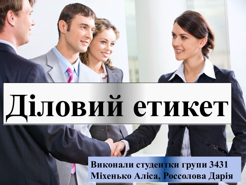 Діловий етикет Виконали студентки групи 3431 Міхенько Аліса, Россолова Дарія