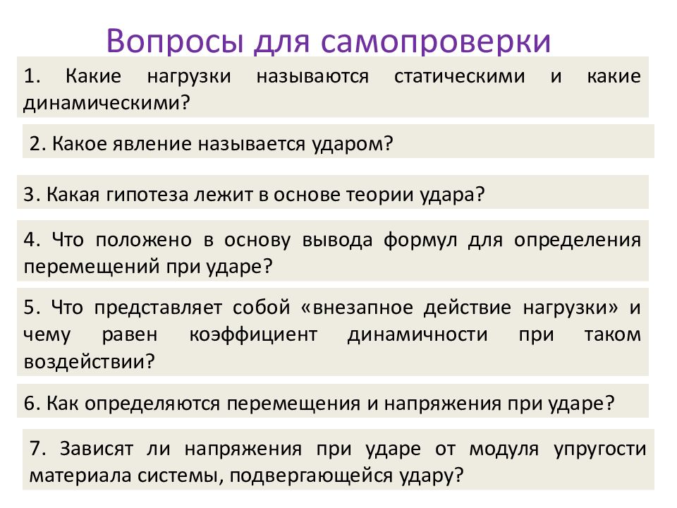Последний слайд презентации: Динамические нагрузки: УДАР