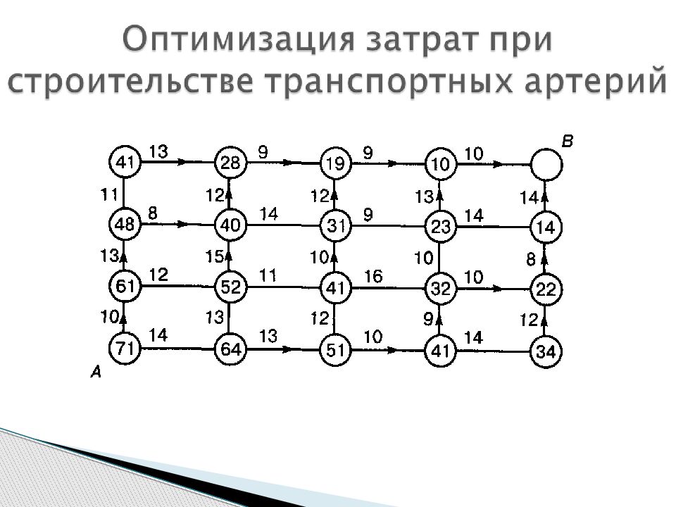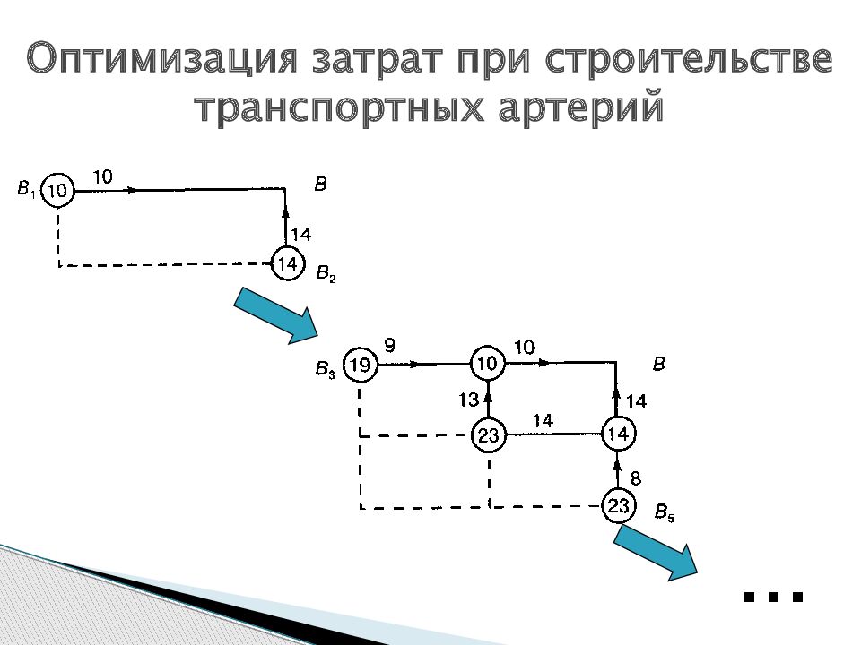 Слайд 30: Оптимизация затрат при строительстве транспортных артерий