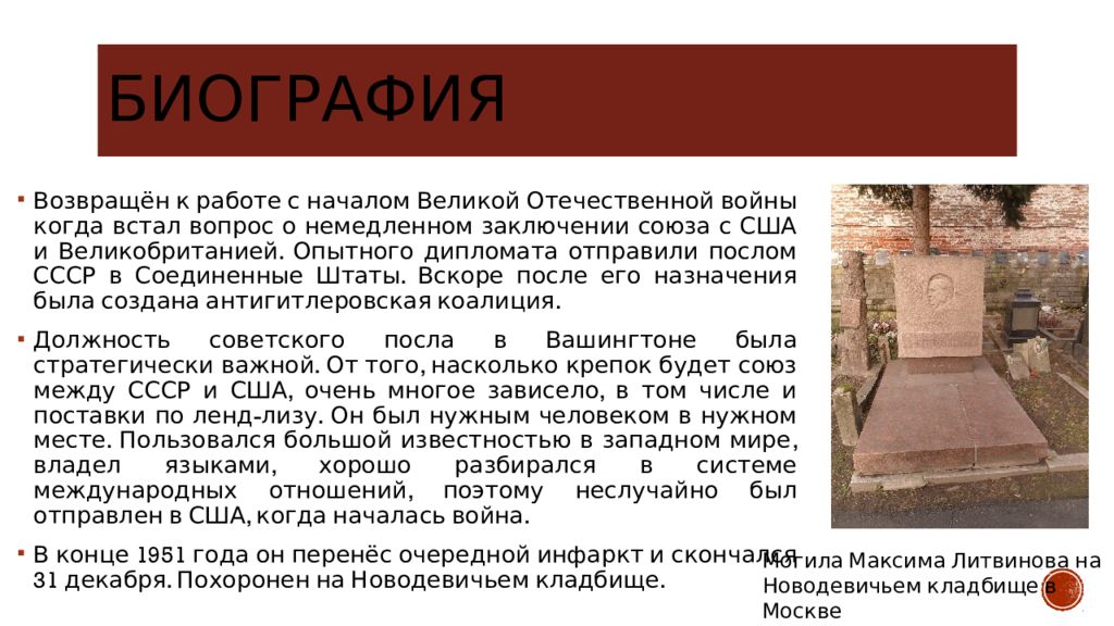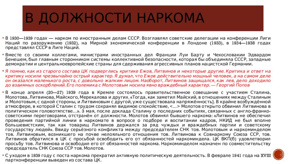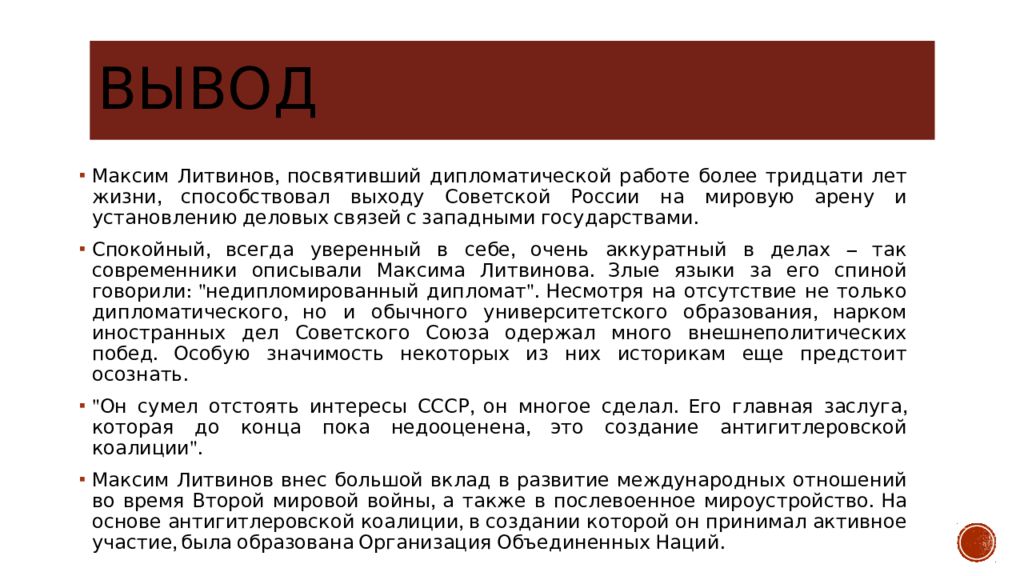 Последний слайд презентации: дипломат М.М.Литвинов: Вывод