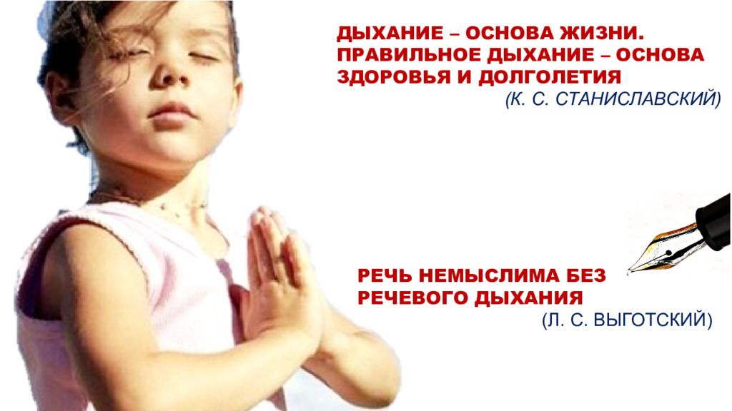 ДЫХАНИЕ – ОСНОВА ЖИЗНИ. ПРАВИЛЬНОЕ ДЫХАНИЕ – ОСНОВА ЗДОРОВЬЯ И ДОЛГОЛЕТИЯ (К. С. СТАНИСЛАВСКИЙ) РЕЧЬ НЕМЫСЛИМА БЕЗ РЕЧЕВОГО ДЫХАНИЯ (Л. С. ВЫГОТСКИЙ)
