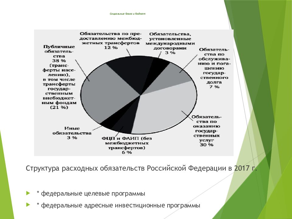 Структура расходных обязательств Российской Федерации в 2017 г. * федеральные целевые программы * федеральные адресные инвестиционные программы