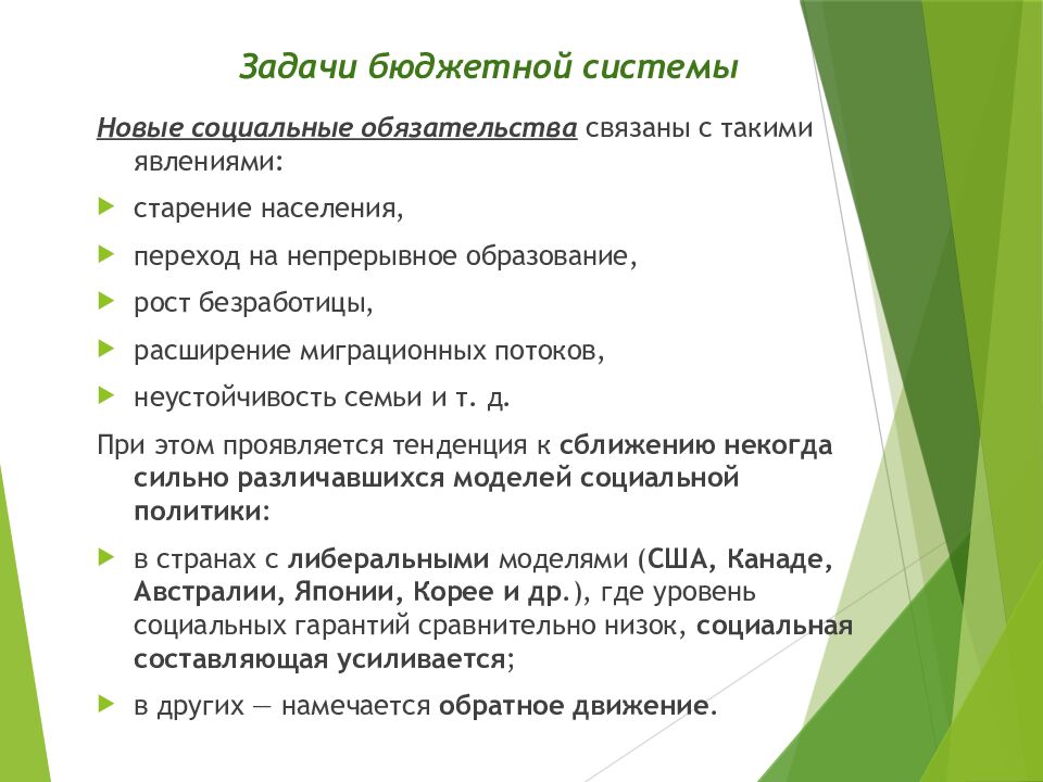 Последний слайд презентации: Доходы населения, налоги и общественные блага — важнейшие элементы социальной: Задачи бюджетной системы