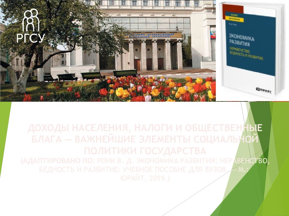 Доходы населения, налоги и общественные блага — важнейшие элементы социальной политики государства (Адаптировано по: Роик В. Д. Экономика развития: неравенство, бедность и развитие: учебное пособие для вузов. — М.: Юрайт, 2019.)