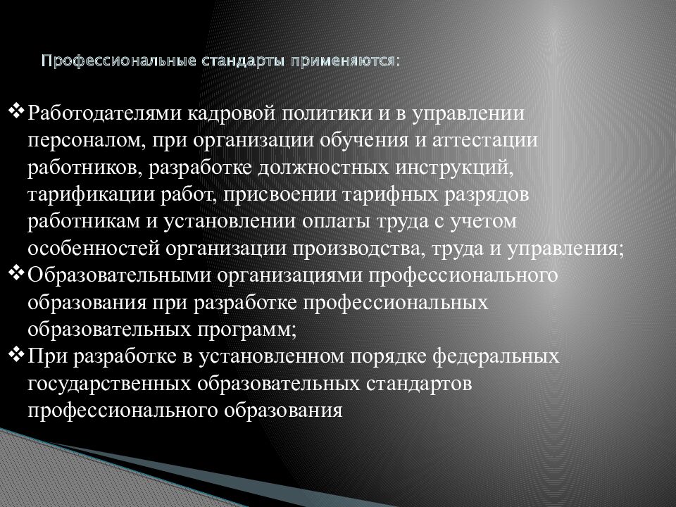 Слайд 22: Профессиональные стандарты применяются: