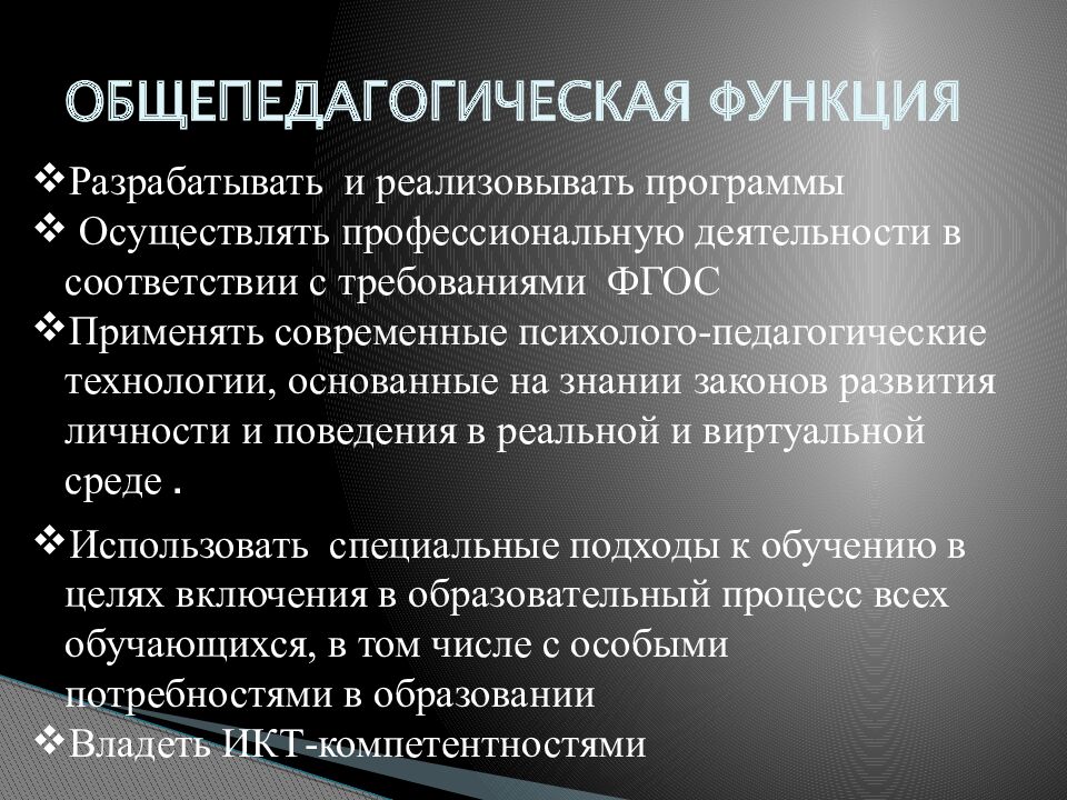Слайд 29: ОБЩЕПЕДАГОГИЧЕСКАЯ ФУНКЦИЯ