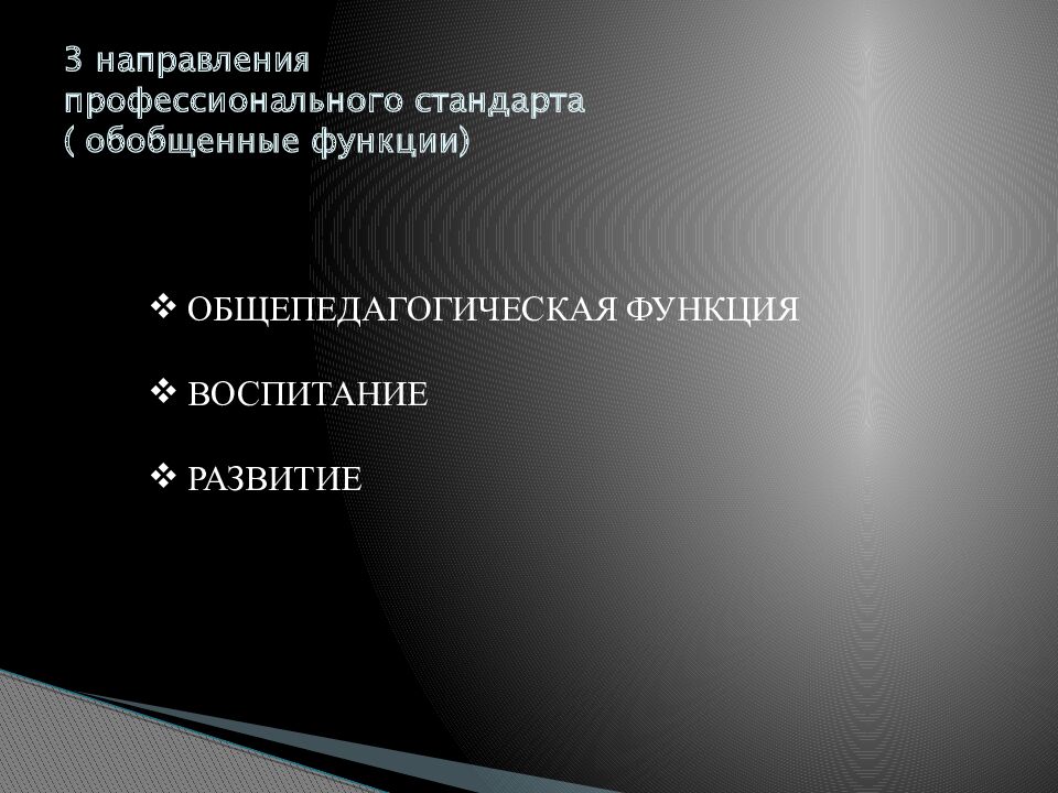 Слайд 28: 3 направления профессионального стандарта ( обобщенные функции )