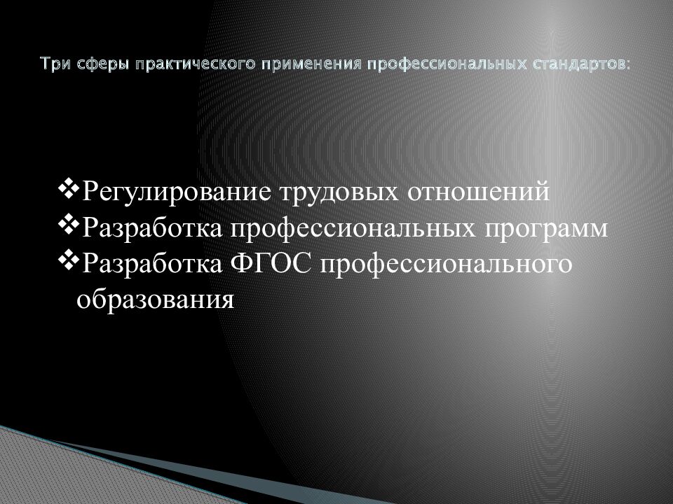 Слайд 26: Три сферы практического применения профессиональных стандартов: