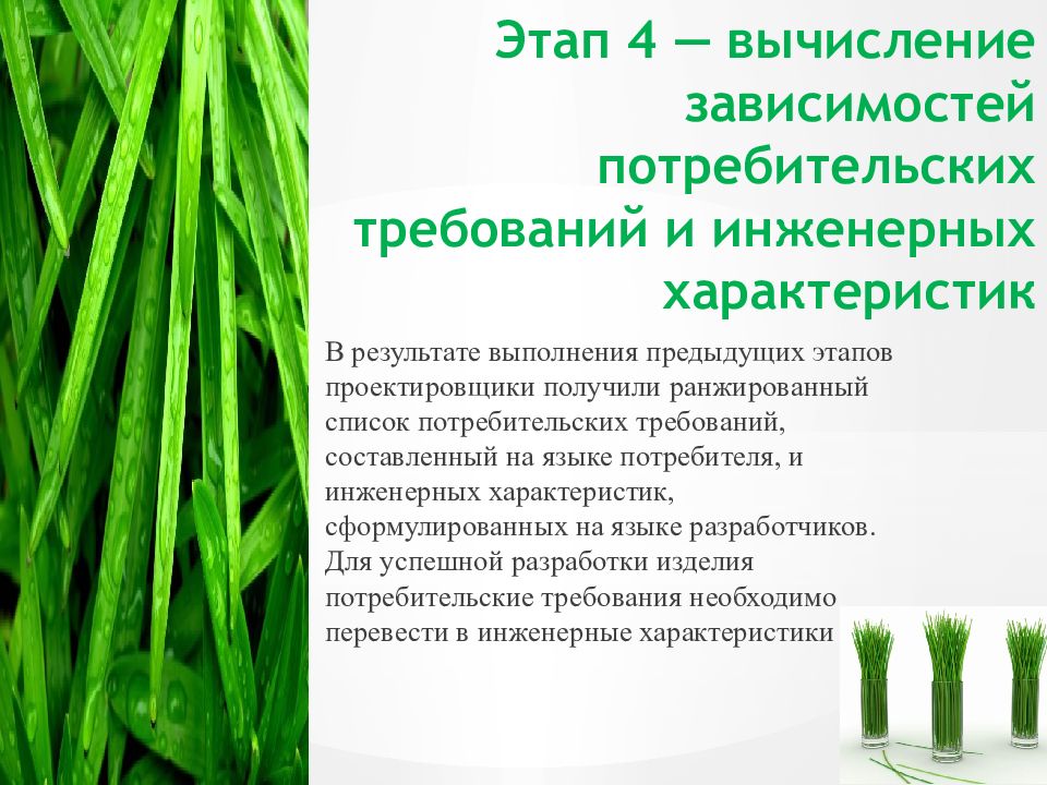 Слайд 10: Этап 4 — вычисление зависимостей потребительских требований и инженерных характеристик