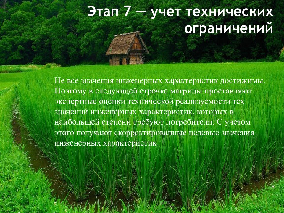 В результате выполнения предыдущих этапов проектировщики получили ранжированный список потребительских требований, составленный на языке потребителя, и инженерных характеристик, сформулированных на языке разработчиков. Для успешной разработки изделия потребительские требования необходимо перевести в инженерные характеристики