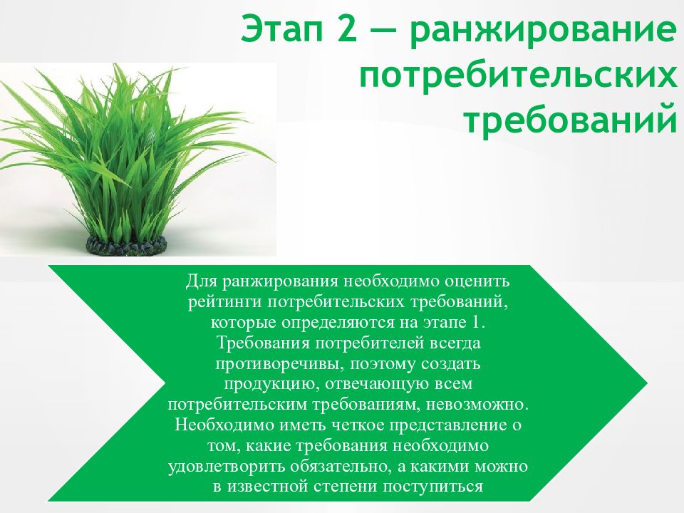 Потребитель формулирует свои пожелания, как правило, в абстрактной форме, например «удобная мебель» или «легкий телефон». Для него такой способ выражения своих потребностей является вполне нормальным. Но для инженеров, проектировщиков, конструкторов этого недостаточно, им необходимо четко определить все параметры продукта
