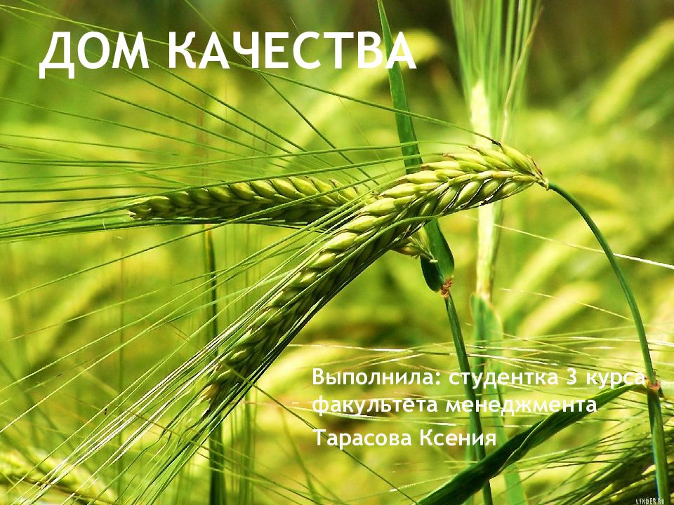 Выполнила: студентка 3 курса факультета менеджмента Тарасова Ксения ДОМ КАЧЕСТВА
