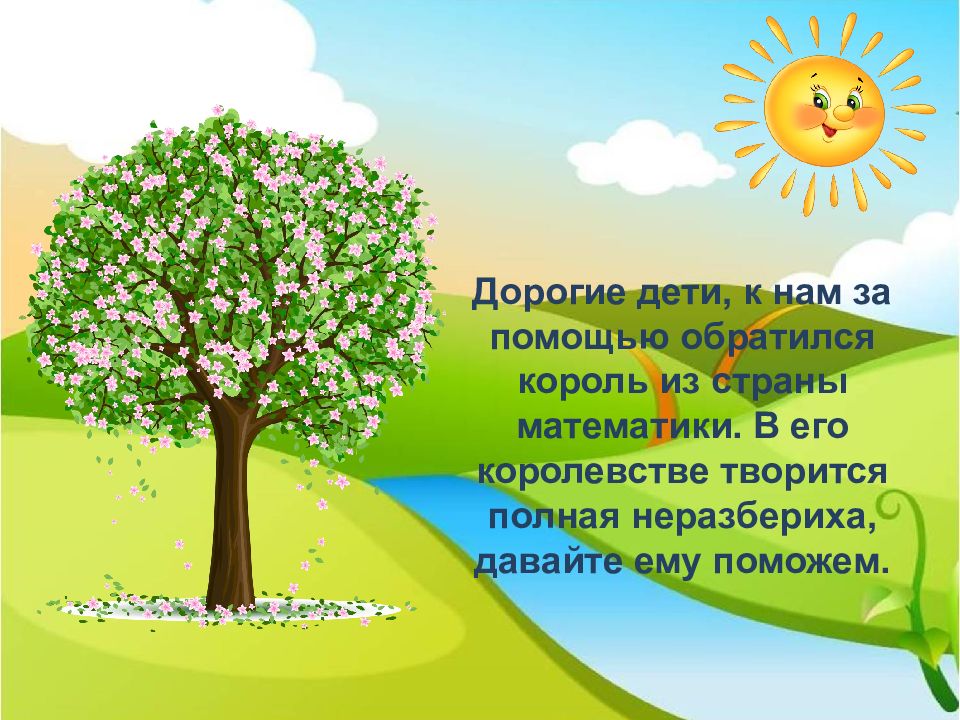 Дорогие дети, к нам за помощью обратился король из страны математики. В его королевстве творится полная неразбериха, давайте ему поможем.