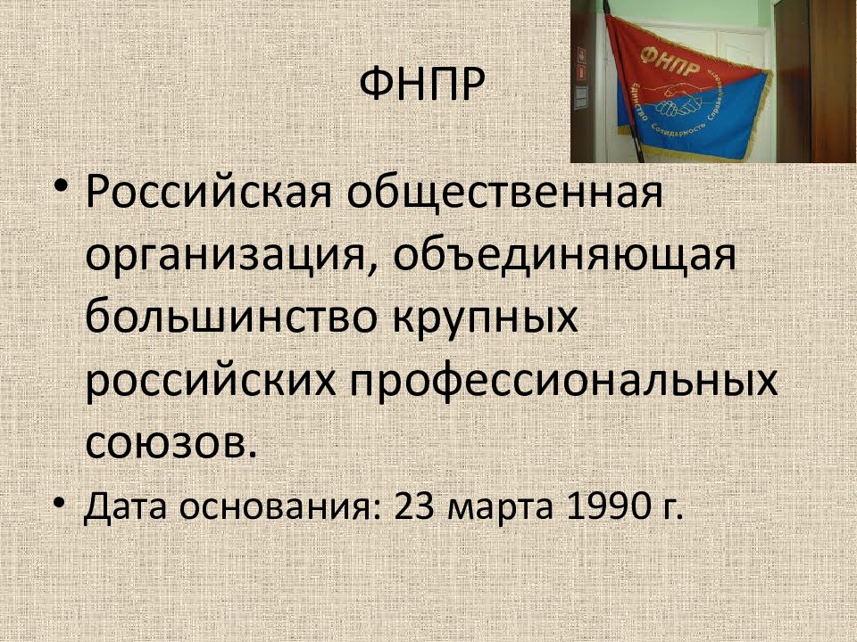 Российская общественная организация, объединяющая большинство крупных российских профессиональных союзов. Дата основания: 23 марта 1990 г.