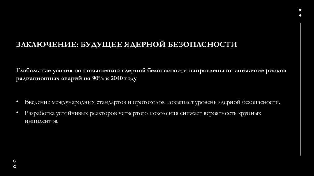Последний слайд презентации: Дозы излучения: от безопасных уровней до аварий на АЭС: Заключение: будущее ядерной безопасности