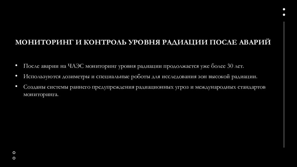 Слайд 15: Мониторинг и контроль уровня радиации после аварий