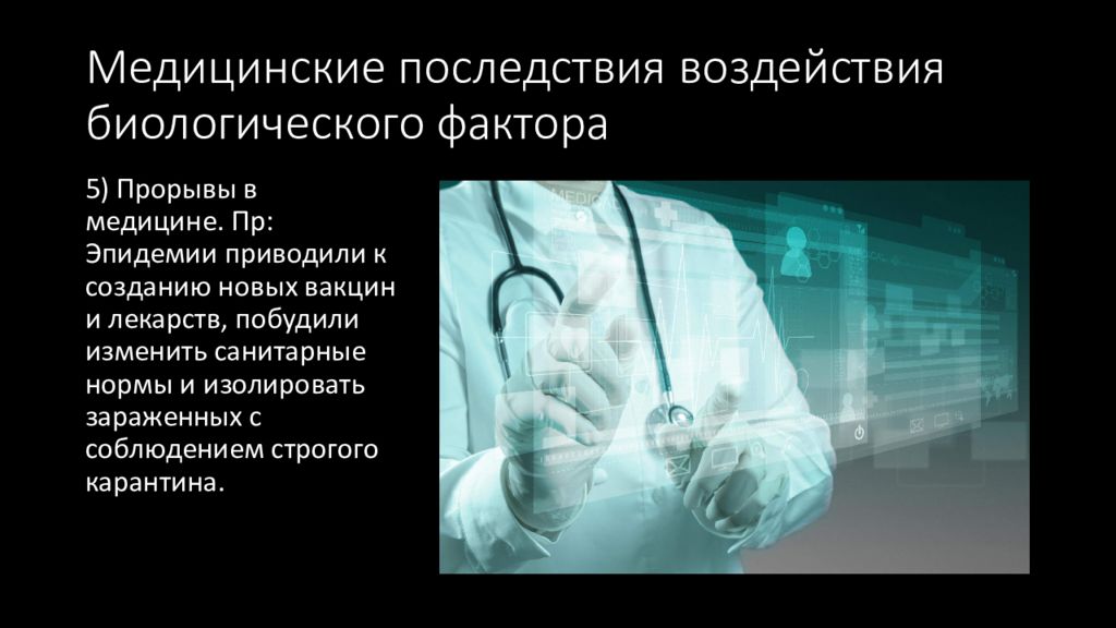Слайд 10: Медицинские последствия воздействия биологического фактора