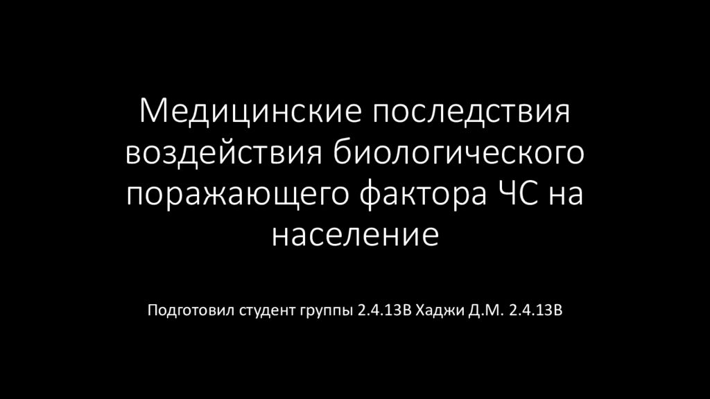 Первый слайд презентации: М едицинские последствия воздействия биологического поражающего фактора ЧС на население