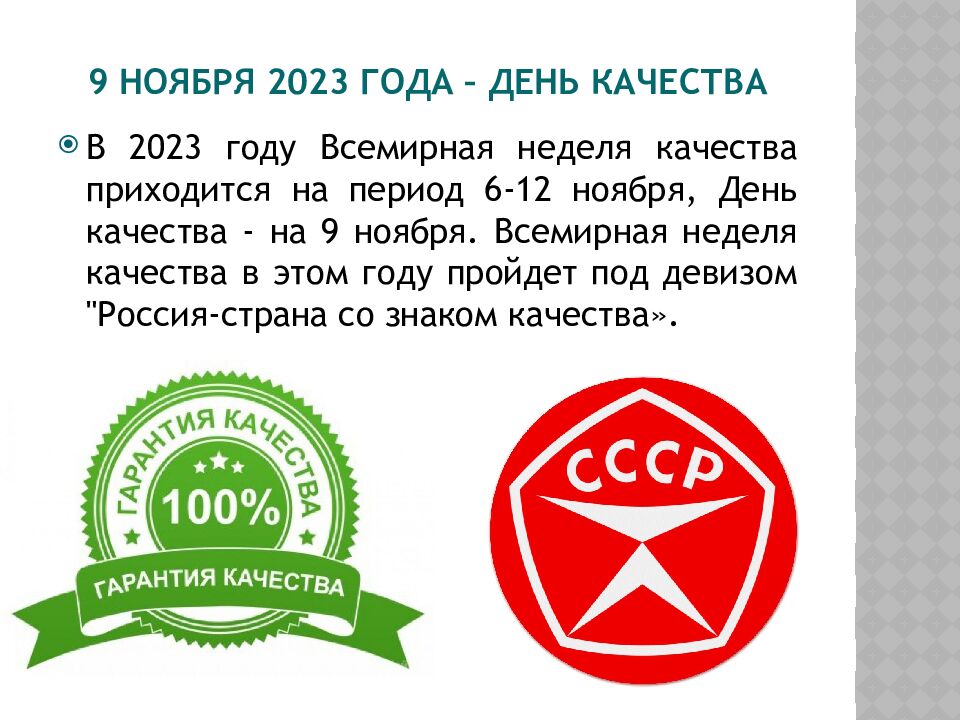 Слайд 3: 9 ноября 2023 года – День качества